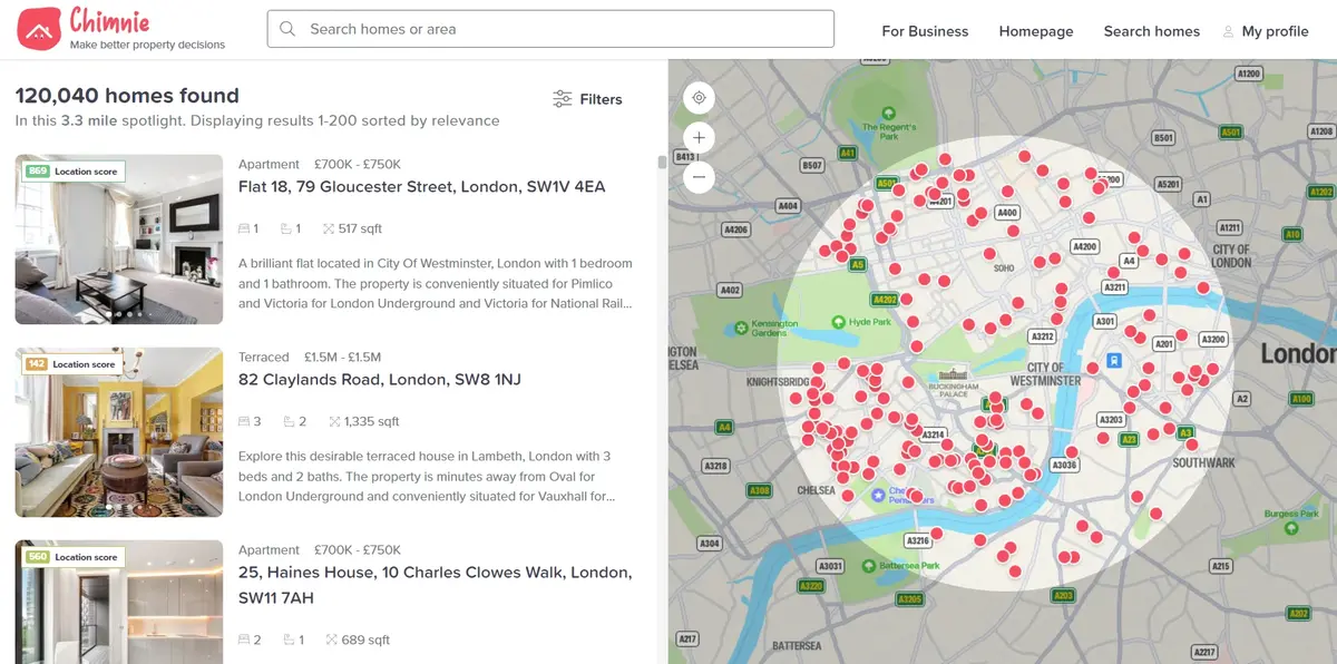 Chimnie offers risk factors, geospatial, market insights, property valuations and many more for every residential and commercial property in the UK.